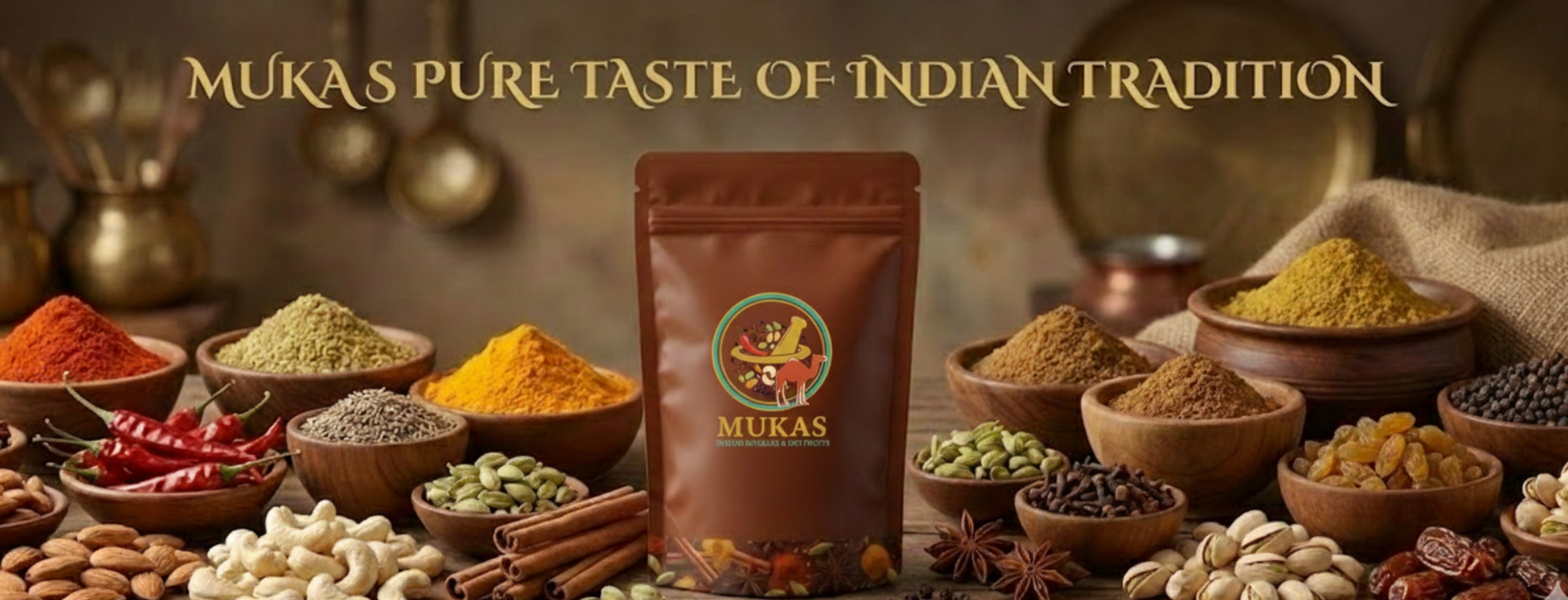 Mukas is a trusted brand dedicated to delivering high-quality Indian masalas and dry fruits. Founded with a passion for traditional recipes, we ensure every product is fresh, pure, and free from artificial additives. Our journey began in the vibrant markets of India, where we source ingredients directly from farmers to preserve the authentic taste. Join us in celebrating the rich culinary heritage of India!